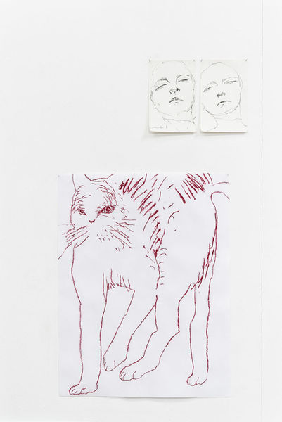 Certains dessins enfin ont le comportement de l’air. Ils occupent tout le volume d’espace qui leur est offert sur le papier, dans un effet de cadrage en-dehors de quoi rien n’existe. Un geste, une silhouette, un œil, une trouvaille, un chat, un mot inventé, tout est là, immédiatement. Pas de hors-champ.